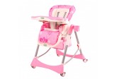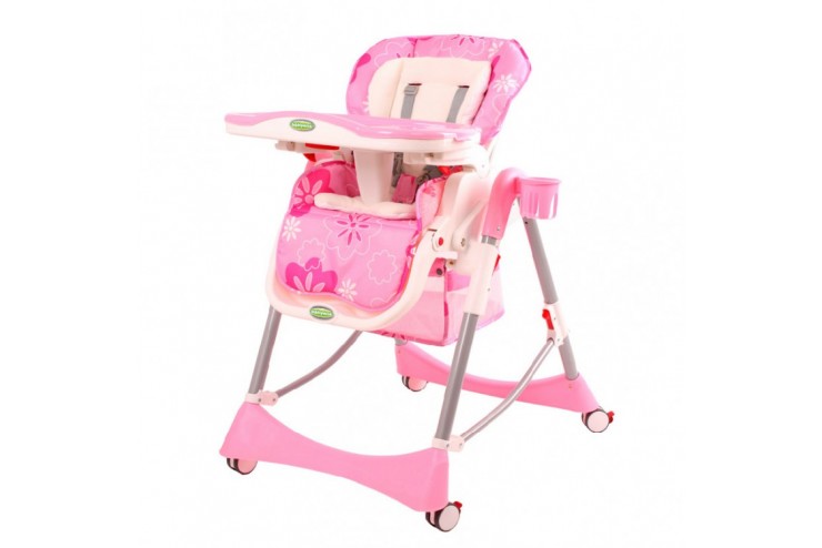 Также стул имеет 5-точечные ремни безопасности, съёмный поднос и столешницу, объемную сетку для игрушек, подстаканник для бутылок, силиконовые колеса, которые не царапают пол, пять регулировок по высоте.