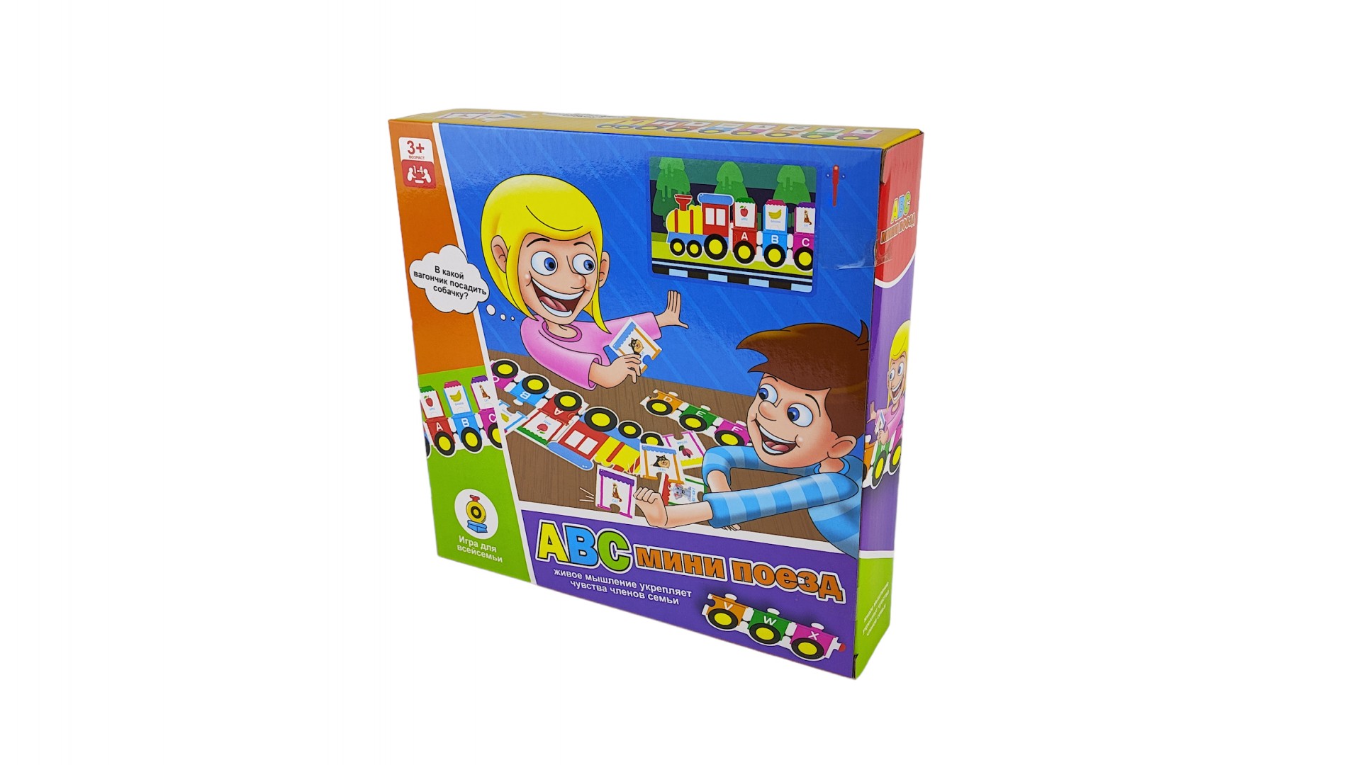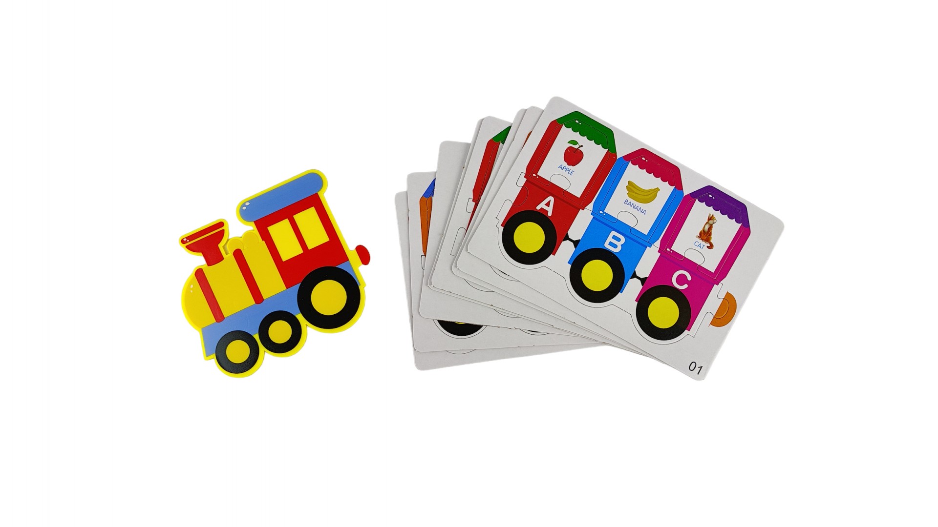 Двадцать шесть ярких и красочных обучающих карточек. Поместите их в соответствующие вагончики. Не путайте их.