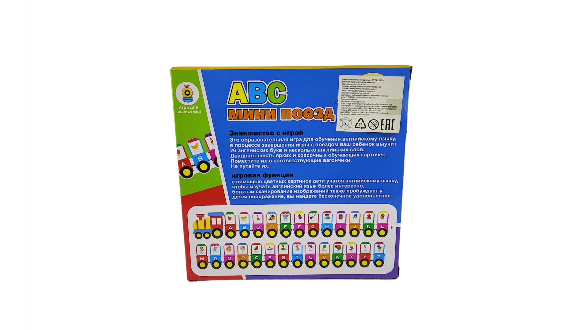 26 карточек с разными словами и животными Один главный поезд Игра помогает обучить ребенка выучить новые слова и буквы. Рекомендуется играть в неё с родителями и весело проводить время в изучении английского языка!