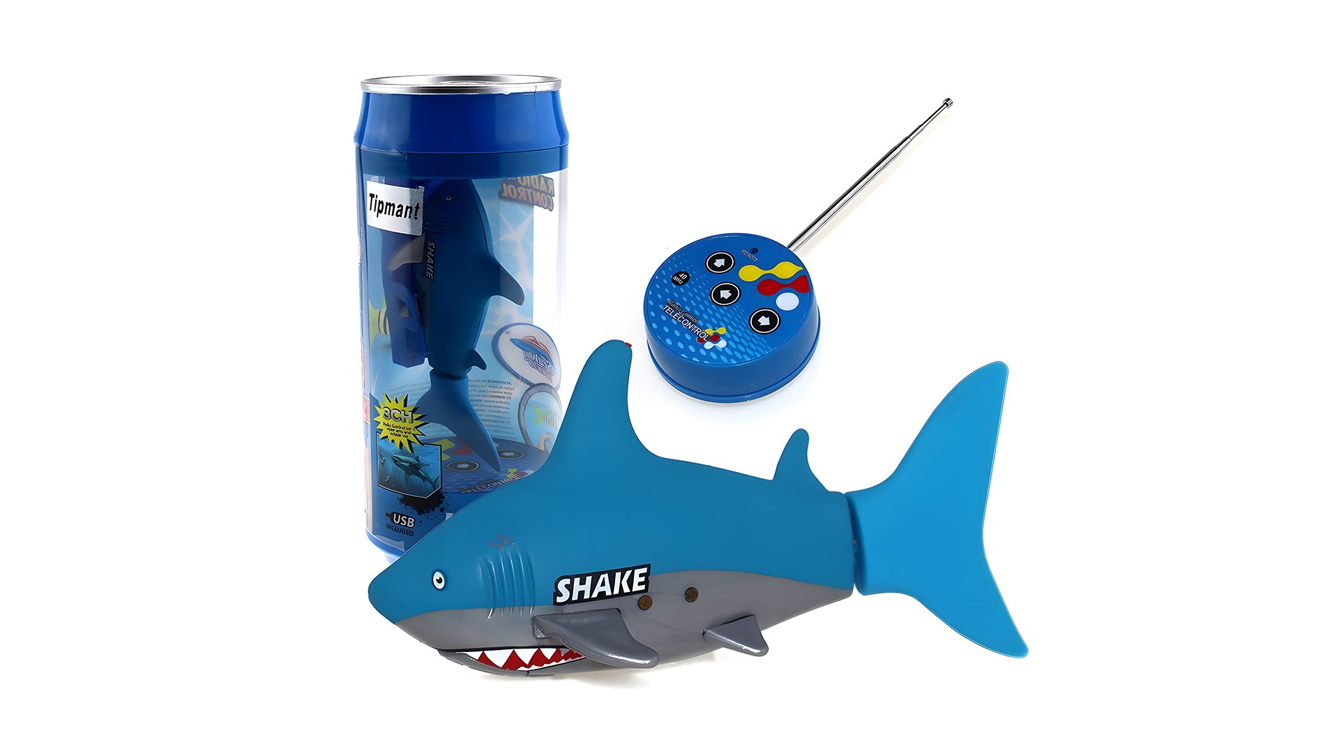 Акула обладает компактным размером, благодаря чему делает ловкие маневры в воде и обладает быстрой подвижностью. Проворная акула станет интересной игрой для ребенка. Радиоуправляемая рыбка, поставляющаяся в стильной упаковке в виде банки с напитком, на удивление простая и эффектная игрушка. Рыбку можно запустить в бассейн, ванну или даже аквариум и управлять ею с помощью команд с пульта.