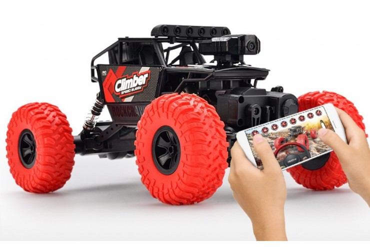 Краулер способен разгоняться до 15 км/ч и управляется пультом ДУ пистолетного типа, работающим на частоте 2,4 ГГц. На каждом колесе установлен амортизатор, а также имеется надежная влагозащита электроники.