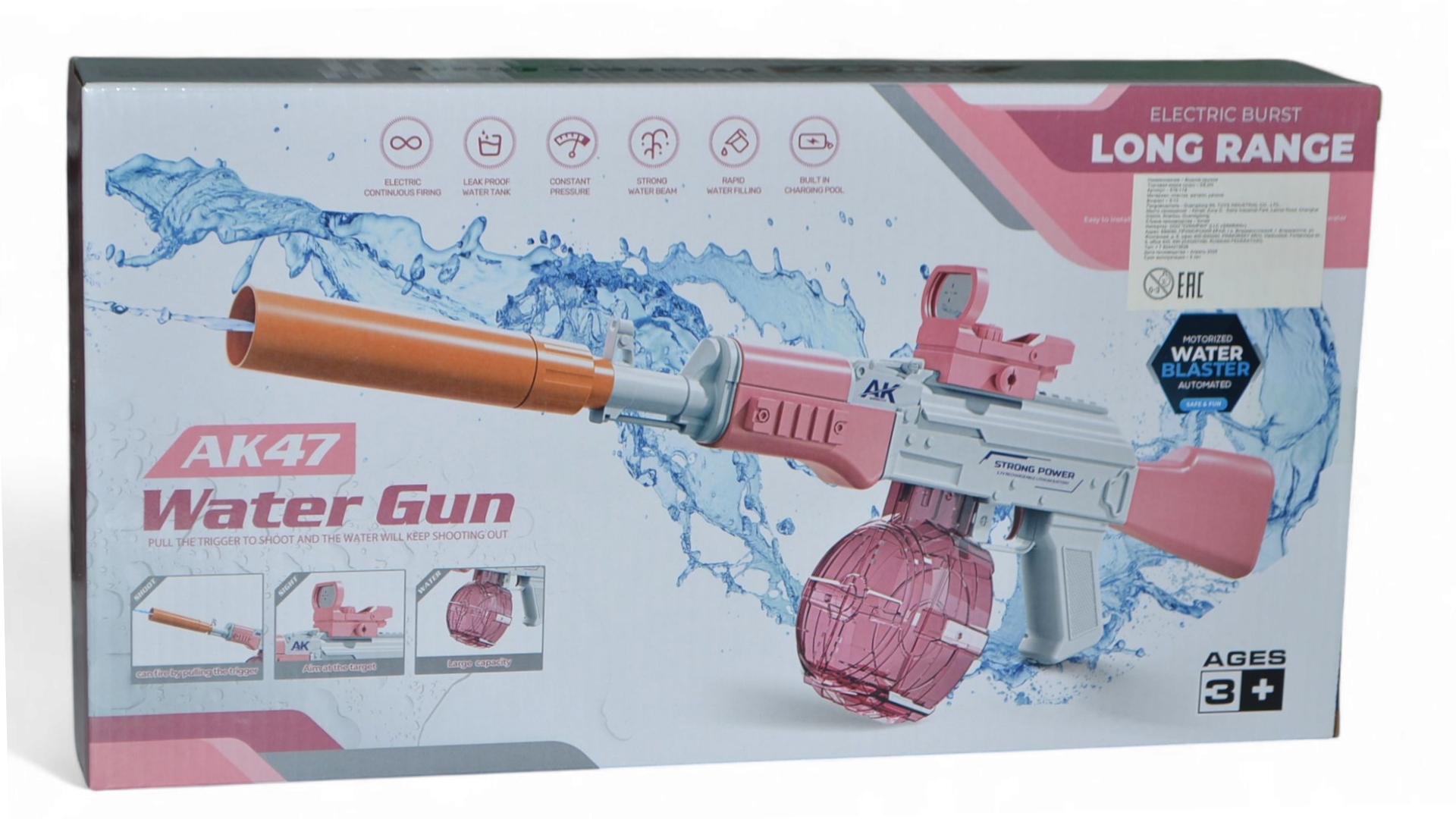 Этот водный автомат – захватывающая игрушка, которая подарит часы веселья и активных игр на свежем воздухе. Выполненная в реалистичном дизайне легендарного Советского автомата, она обязательно привлечет внимание детей и подростков. Яркий розовый цвет с барабанным магазином добавляет ей стильный и современный вид.