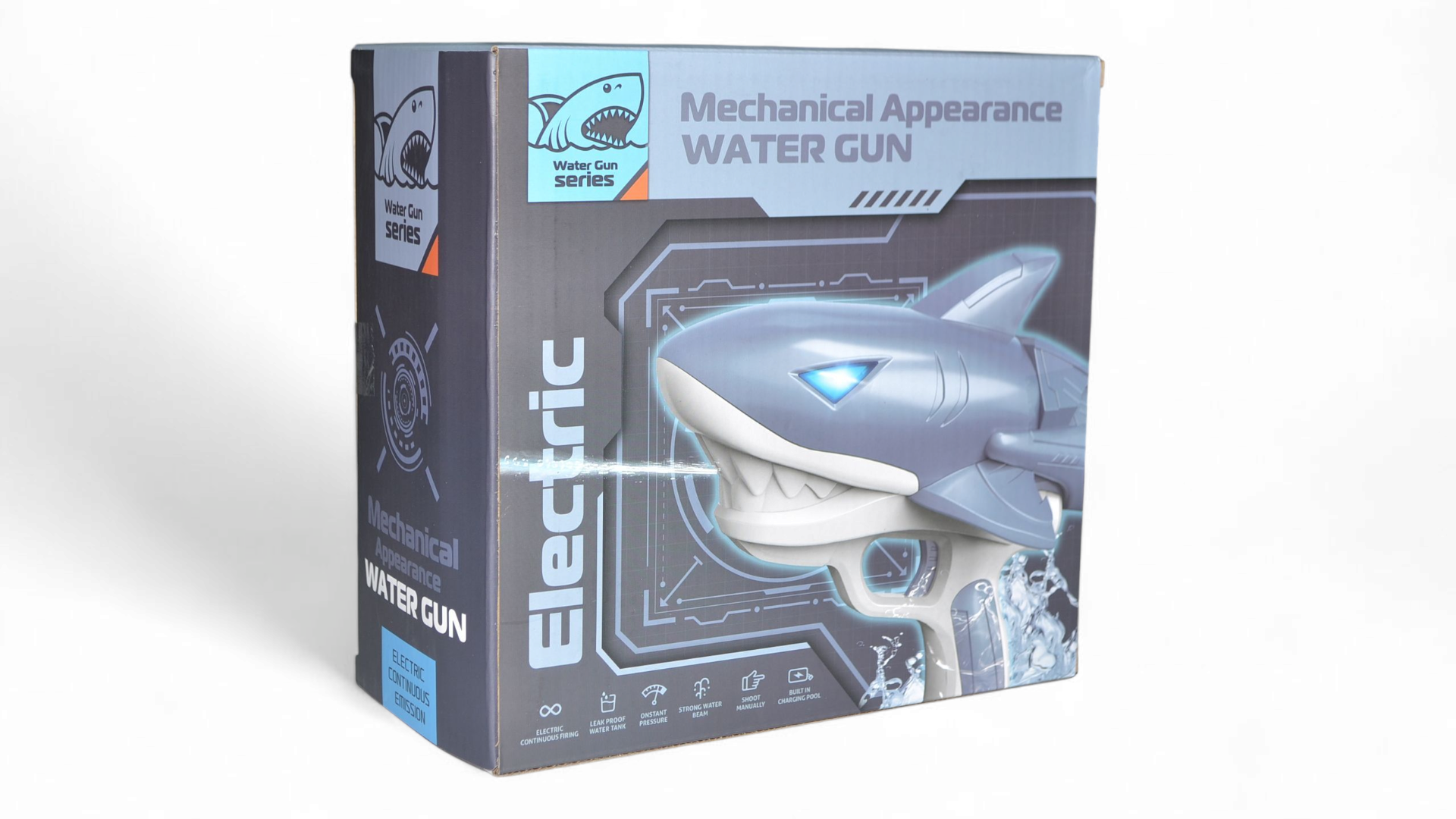 Оснащен электрическим механизмом, который обеспечивает мощную и непрерывную струю воды. Больше не нужно вручную накачивать давление – просто нажмите на курок и наслаждайтесь водной атакой! Это особенно удобно во время активных игр, когда важна скорость и маневренность.