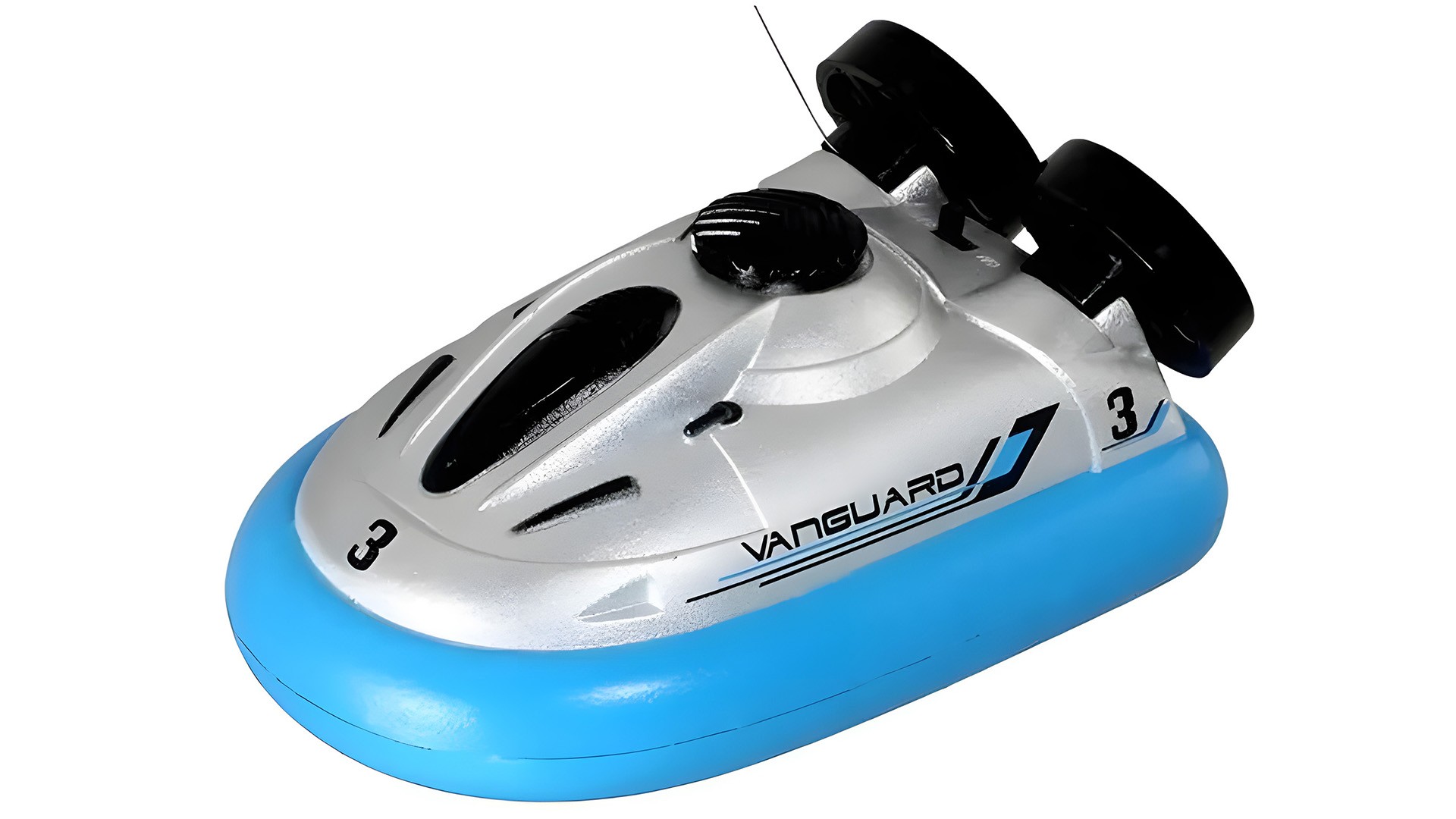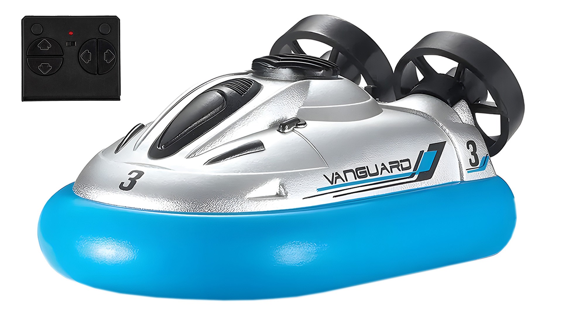 Радиоуправляемая амфибия может двигаться вперед, назад, поворачивать налево/направо. Проста в управлении. Двигается как реальное судно на воздушной подушке по воде. Великолепная игрушка для детей от 3 лет.