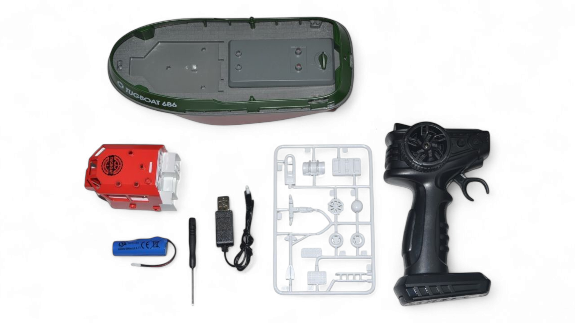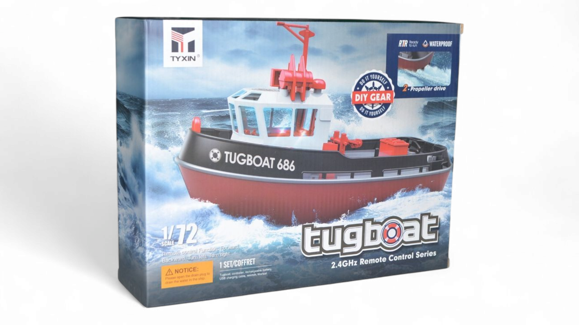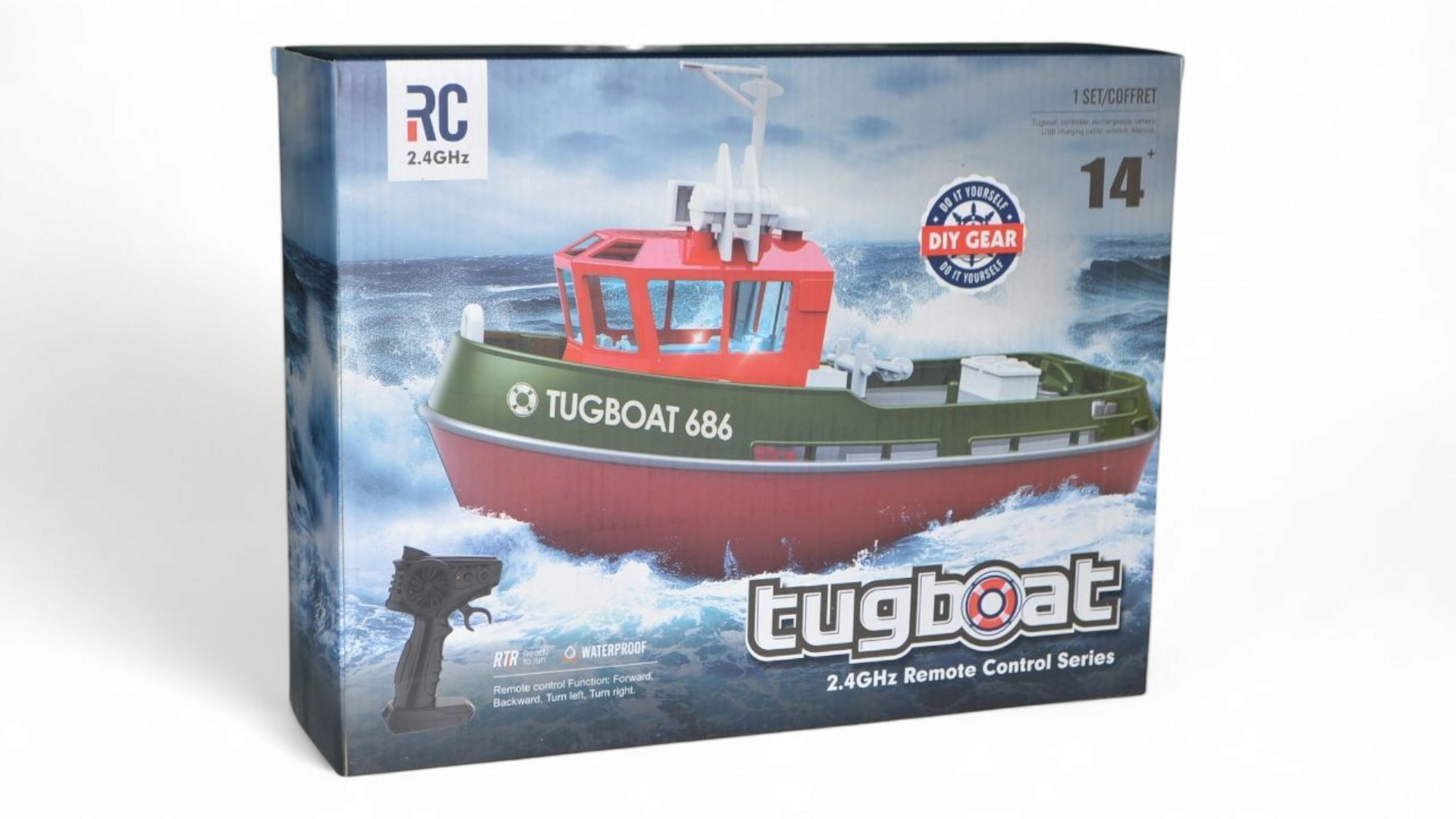 В комплект поставки входит все необходимое для начала работы: полностью собранная модель буксира, пульт управления 2,4 ГГц, аккумулятор и зарядное устройство USB. Вам не потребуется никаких дополнительных инструментов или материалов, чтобы начать наслаждаться управлением этим прекрасным буксиром.