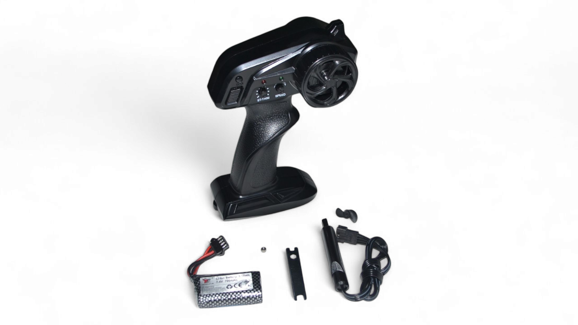 Катер отличается простотой управления, что делает его подходящим даже для начинающих. Две скорости позволяют адаптировать катер к различным условиям. Пульт управления пистолетного типа, работающий на частоте 2,4 GHz, обеспечивает стабильный сигнал и исключает помехи.