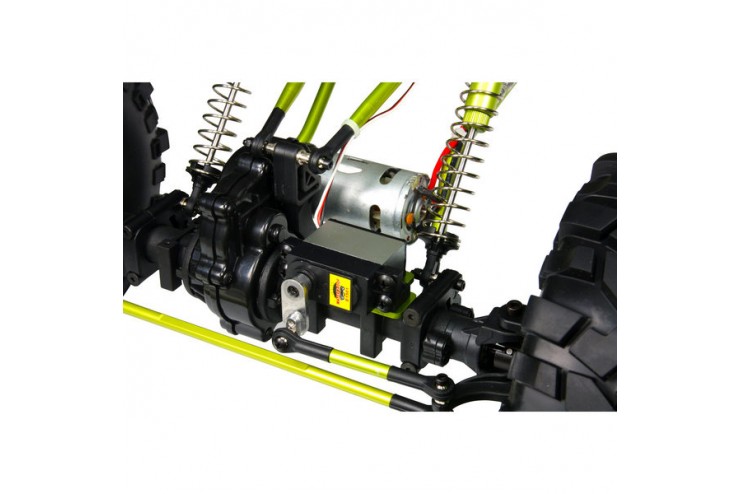 Краулер выполненный в масштабе 1:5 имеет потрясающие технические характеристики: этот автомобиль обладатель полного привода, двух мощнейших двигателей и масляных амортизаторов гарантирующих уверенное сцепление с дорогой и невероятную устойчивость на любом грунте.