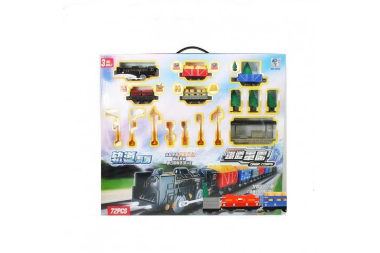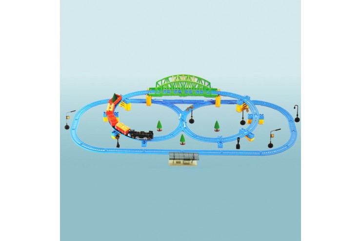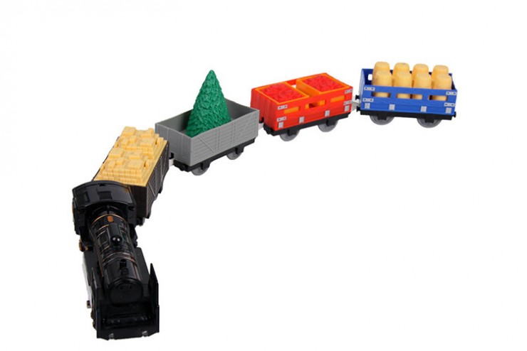Веселое гудение паровоза, яркое световое сопровождение и симпатичные грузовые вагончики – все это набор железной дороги от фирмы Huan Nuo.