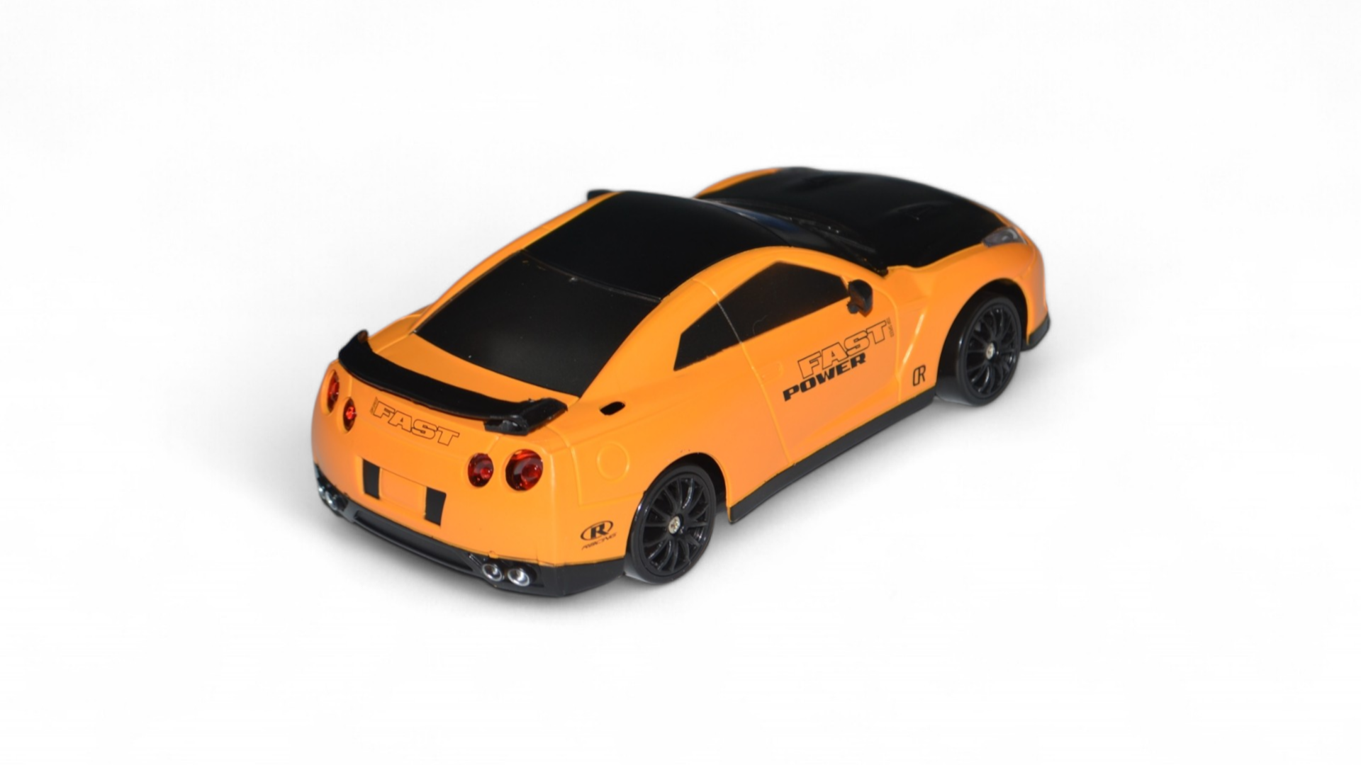 Радиоуправляемая машина для дрифта Nissan GT-R (19 см, 15 км/ч, сменные колеса, фишки) - SC24A02-1 - это машина, которая предназначена для дрифта. Она имеет полный привод и выполненная в масштабе 1:24. Машинка управляется при помощи пульта ДУ, работающего на частоте 2,4 ГГц. В наборе также поставляются комплект запасных колес, дорожные конусы, зарядное устройство и аккумулятор. Во время движения у машинки светятся фары.