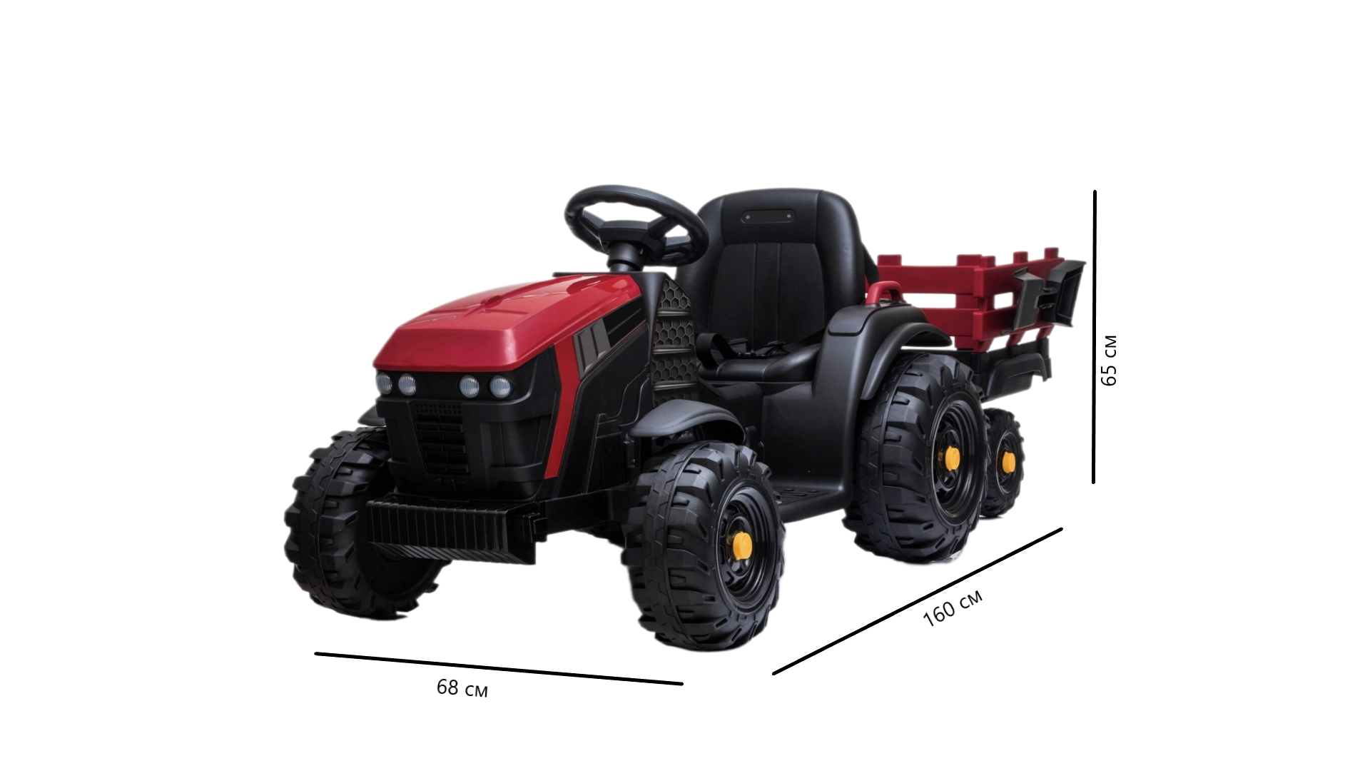 - Габариты машины с прицепом: 160 см х 68 см х 65 см;