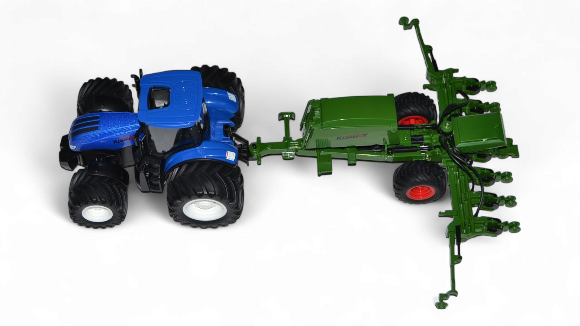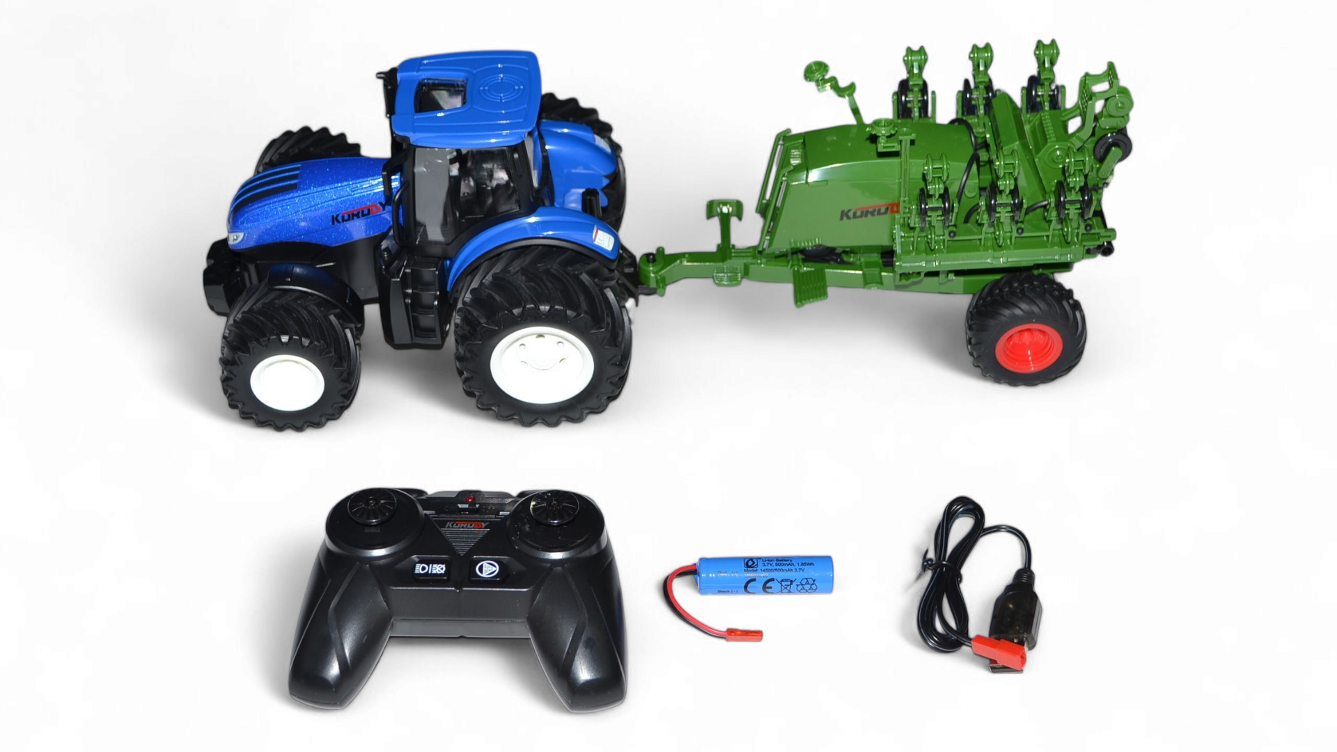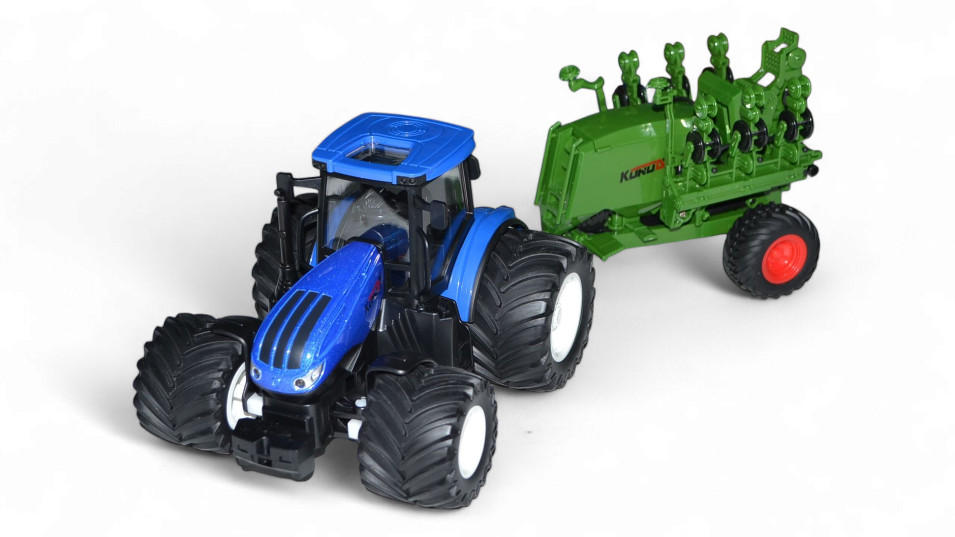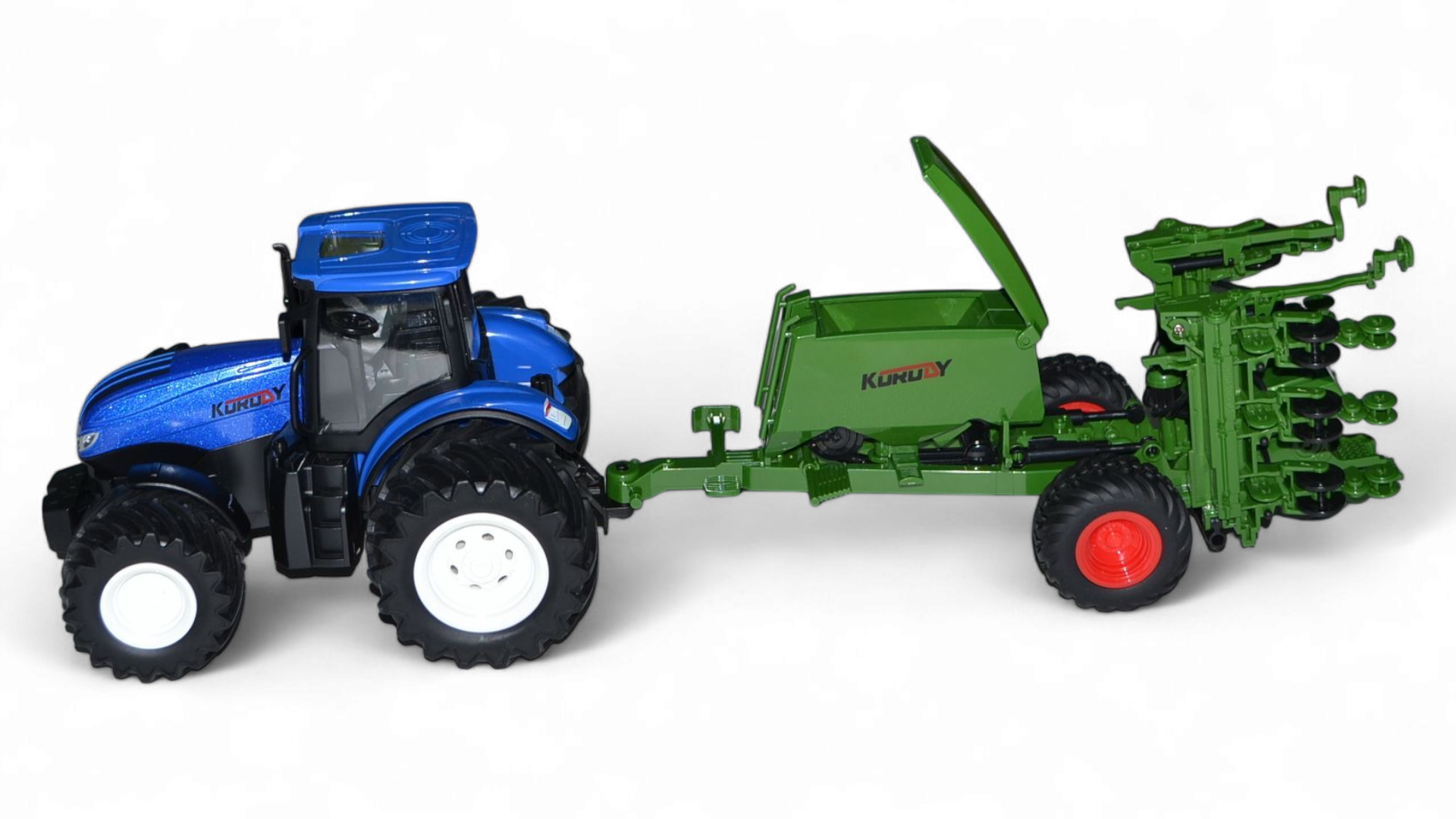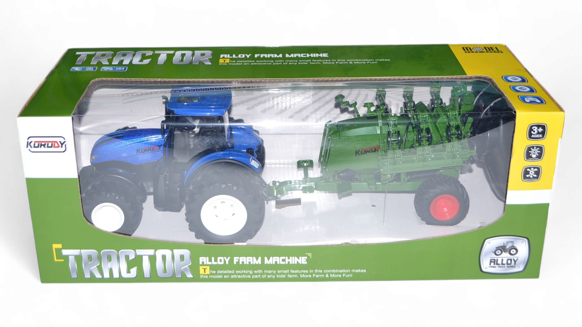 Радиоуправляемый фермерский трактор с зерновой сеялкой,  масштаб 1:24 – это не просто игрушка, а миниатюрная копия сельскохозяйственного трудяги, готовая выполнять определённый спектр задач на вашей ферме в масштабе. Эта модель сочетает в себе реалистичный дизайн, функциональность и передовые технологии радиоуправления, позволяя юным фермерам и любителям техники погрузиться в увлекательный мир сельского хозяйства.