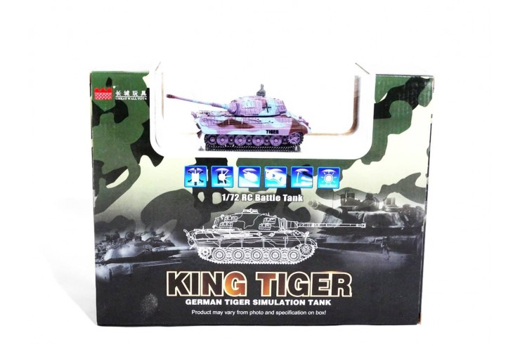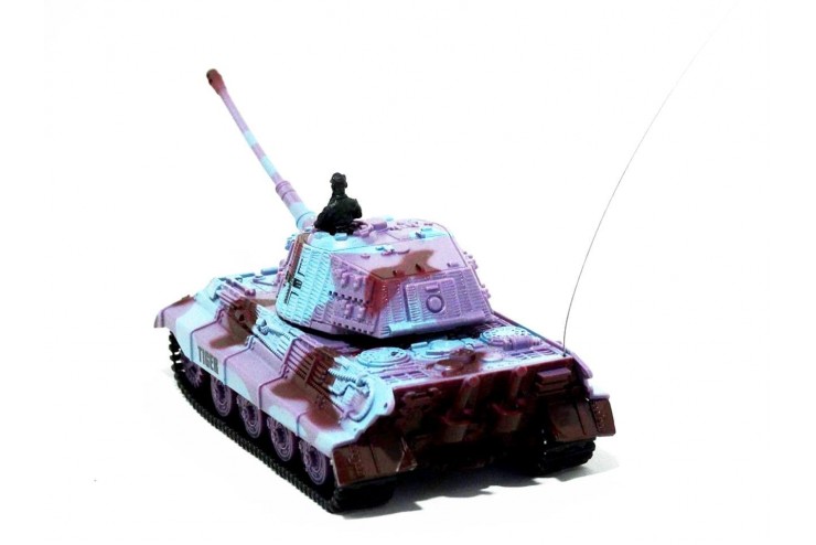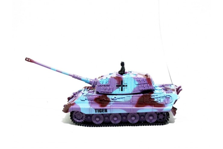 Радиоуправляемая модель танка в масштабе 1:72, может имитировать выстрел и поворачивать башню, имеет звуковые эффекты, зарядка производится при помощи пульта ДУ.