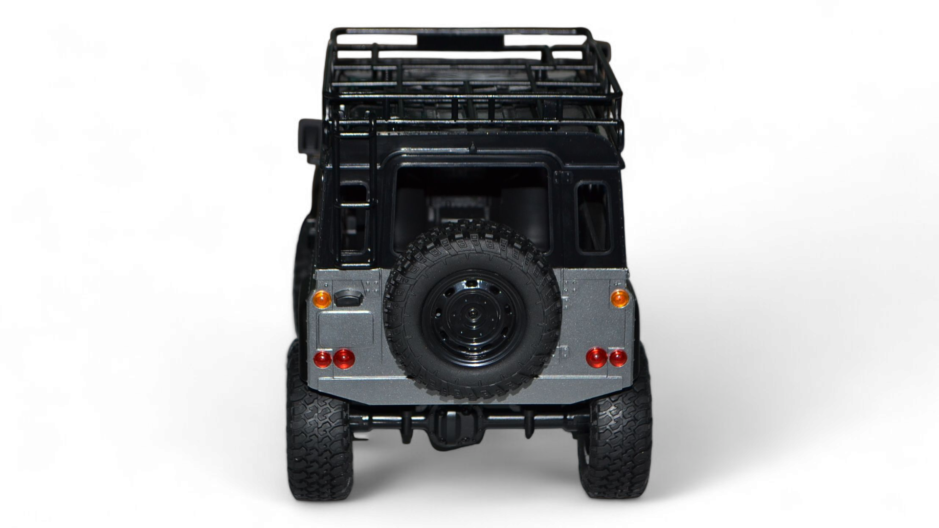 Модель выполнена с невероятной точностью, повторяя все особенности оригинального Land Rover Defender D90. Вы увидите характерные угловатые формы кузова, массивный бампер, решетку радиатора и даже запасное колесо на задней двери. Реалистичные фары и задние фонари добавляют модели еще больше аутентичности.