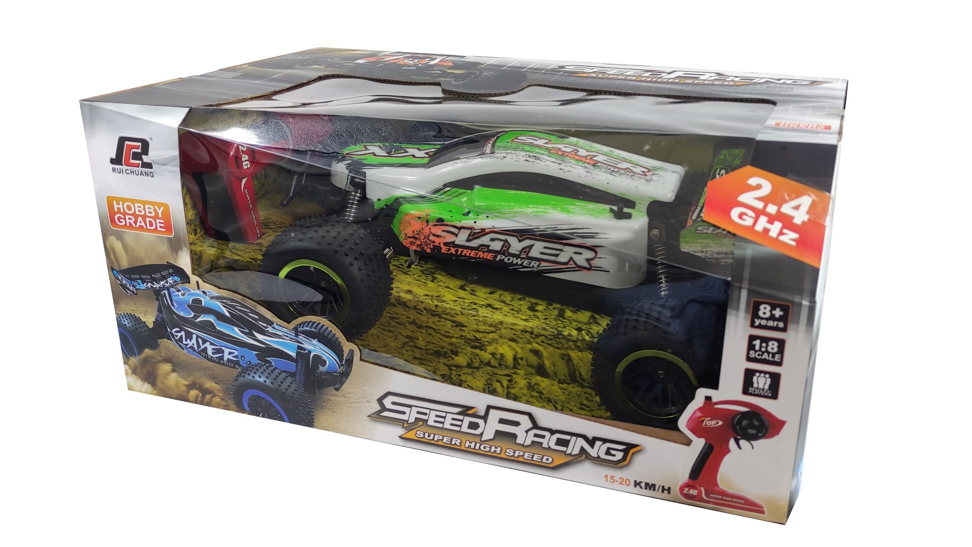 Радиоуправляемая машина багги на пульте управления оснащена мощным двигателем в сочетании с легким корпусом. Длина 40,5 см, 1:8 2WD, обеспечивает быстрый разгон и движение в любом направлении. Машинка для мальчиков и девочек имеет мощный мотор. Радиоуправляемая игрушка легко преодолевает сложные препятствия. Такая машинка на пульте управления - мечта не только ребенка, но и взрослых. Это уже не просто детская игрушка, а почти настоящая машина. Игрушка упакована в красивую коробку, идеально подходит для подарка мальчику. Радостные эмоции и отличное настроение вызовет такой подарок, у всей семьи.