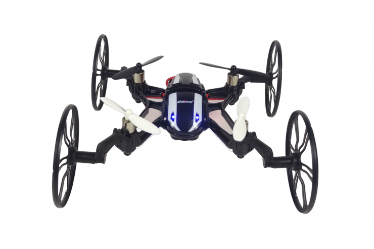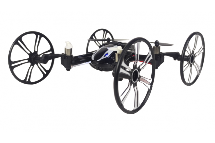 Радиоуправляемый квадрокоптер-трансформер с камерой HD. Съемная защита винтов, возможность установки колес разных размеров, высокое качество фото и видео съемки, LED-подсветка.