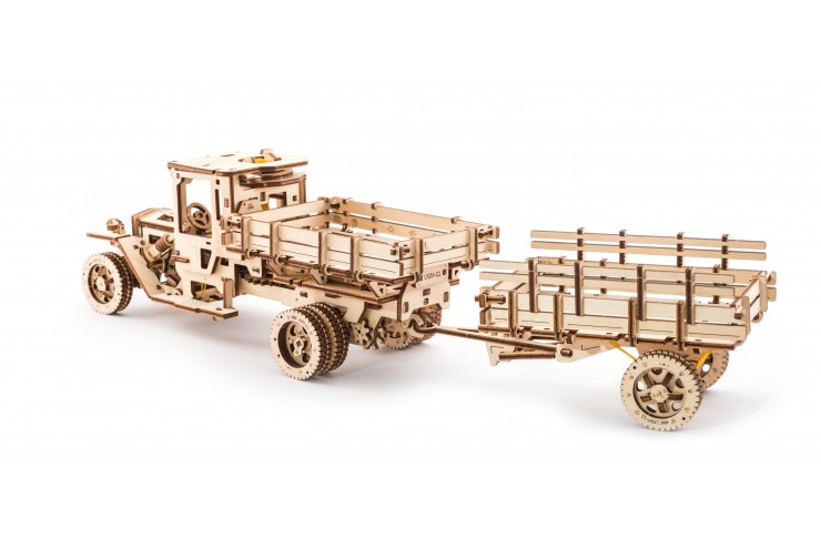 Прицеп: имеет очень реалистичные рессоры, на которых покачивается кузов прицепа во время езды. Под дышлом есть подставка, чтобы модель могла стоять автономно.