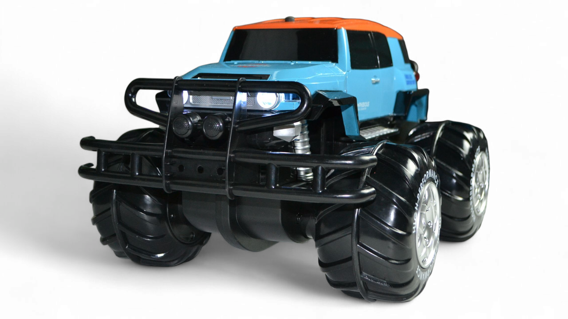 Радиоуправляемая машина Джип Амфибия Toyota – это захватывающее сочетание внедорожных качеств легендарного джипа и способности уверенно передвигаться по воде. Модель, как правило, выполнена в масштабе 1:10, что добавляет реалистичности и детализации. Яркий дизайн, повторяющий облик культового внедорожника Toyota, привлекает внимание и вызывает восторг как у детей, так и у взрослых.