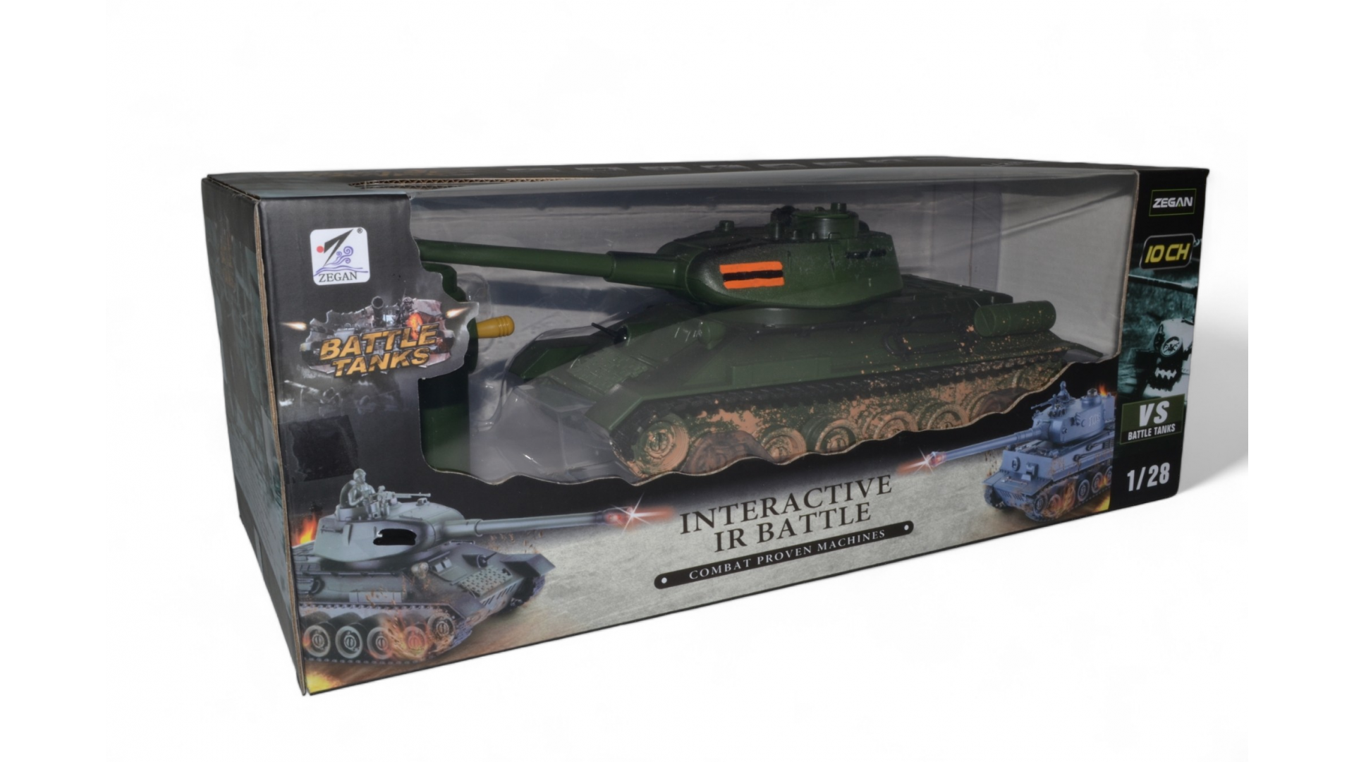 Радиоуправляемый танк Zegan 1:28 для танкового боя - это радиоуправляемый танк, который может участвовать в танковых боях. Стрельба осуществляется инфракрасным лучом на расстояние до 3 м в секторе до 10 градусов.