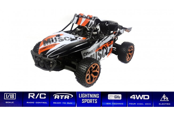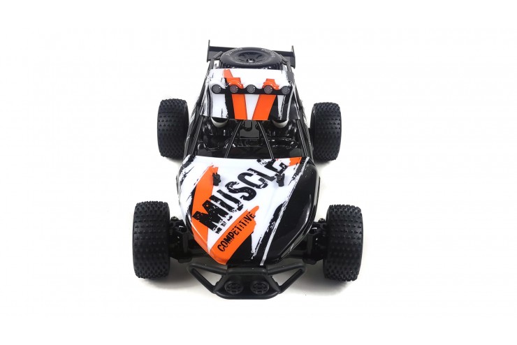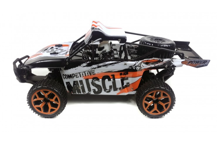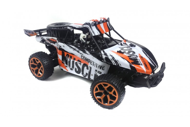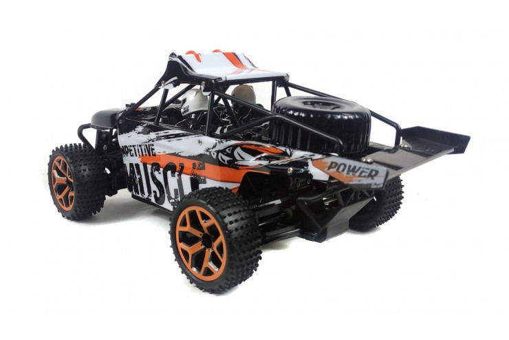 Гоночная багги выпускается в различных вариантах окраски, комплектуется аккумулятором и современной радиоаппаратурой 2.4Ггц. Можно запускать несколько моделей вместе с друзьями, не создавая друг другу помех. Эффектный внешний вид, крепкие дифференциалы гарантируют надежность и массу приятных эмоций во время гонок. Машина полностью собрана и готова к гонкам прямо из коробки, просто зарядите аккумулятор, вставьте батарейки в пульт и наслаждайтесь. Эта малютка ездит и контролируется как настоящая багги для гонок в пустыне.