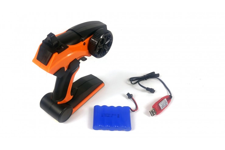 Комплектация: машинка, пульт, зарядное устройство, аккумулятор.