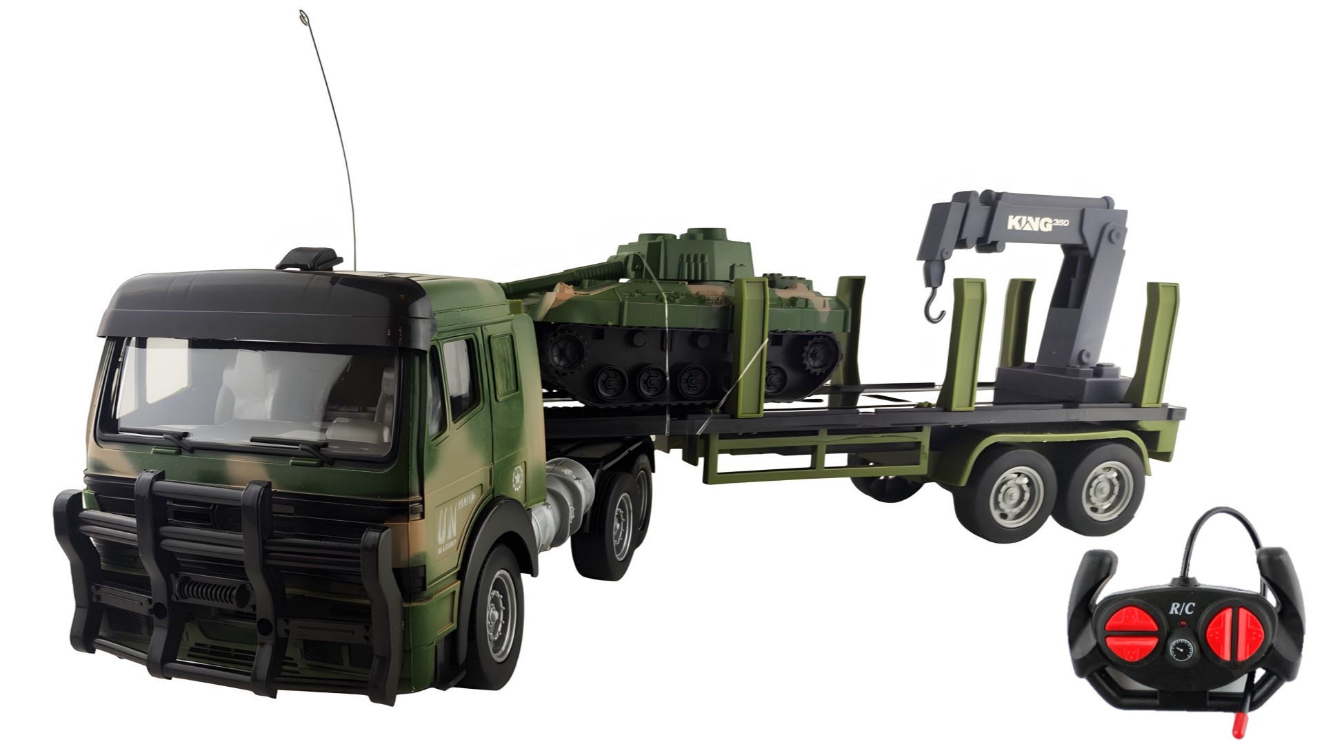 Радиоуправляемый военный грузовик City Truck - это сразу 2 игрушки в одном комплекте. И хотя радиоуправляемой является только одна из них, такой набор, скорее всего, понравится каждому мальчику. Помимо возможности дистанционного управления у фуры разноцветная подсветка кабины. При желании танк можно убрать с платформы, а на его место положить любой небольшой груз. Данная игрушка может стать хорошим дополнением к различным играм сюжетно-ролевого типа.